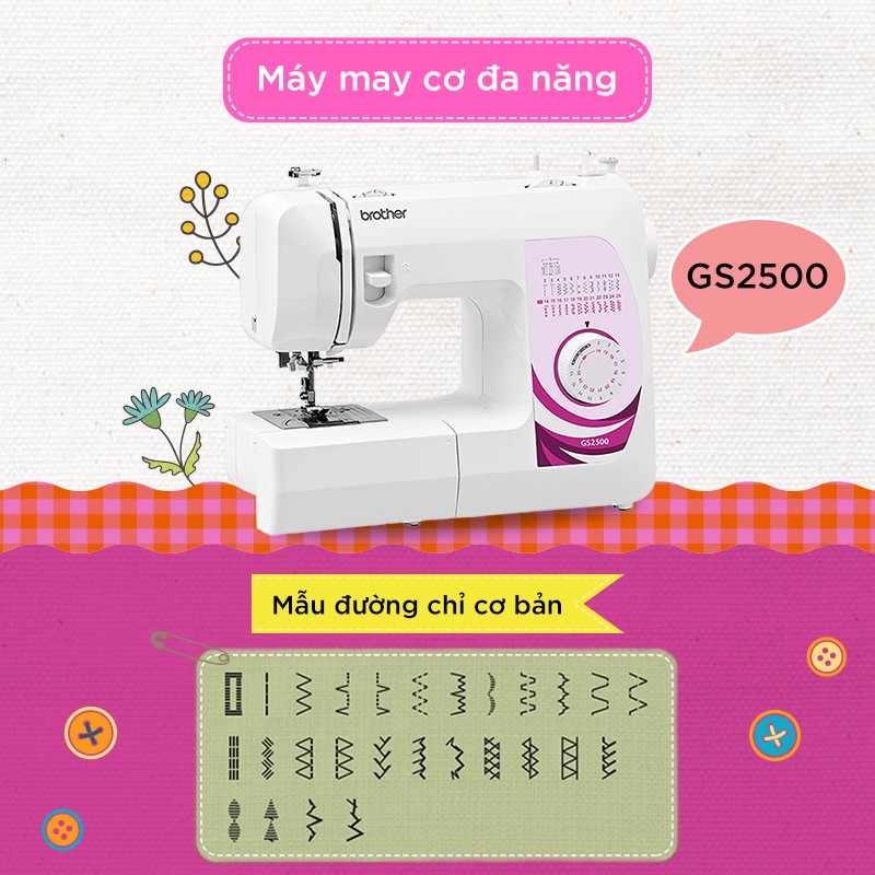 Thiết Bị Điện Gia Dụng > Thiết bị điện gia dụng nhỏ > Máy may & Phụ kiện || Máy may cơ Brother GS2500Còn hàng