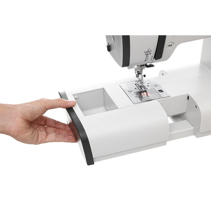 Được trang bị đánh suốt tự động, giúp tạo ra các con suốt chỉ dễ dàng hơn. Đặc biệt, trong khi đánh suốt, gạt cần suốt chỉ qua bên phải để khóa kim may để đảm bảo an toàn cho người dùng.