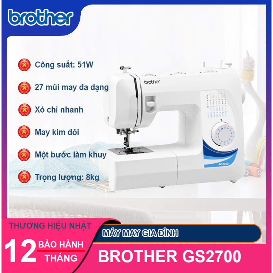 Thiết Bị Điện Gia Dụng > Thiết bị điện gia dụng nhỏ > Máy may & Phụ kiện || [Mã ELHADEV giảm 4% đơn 300K] Máy May Gia Đình Brother GS2700 Hàng chính hãng xỏ chỉ tự độngCòn hàng