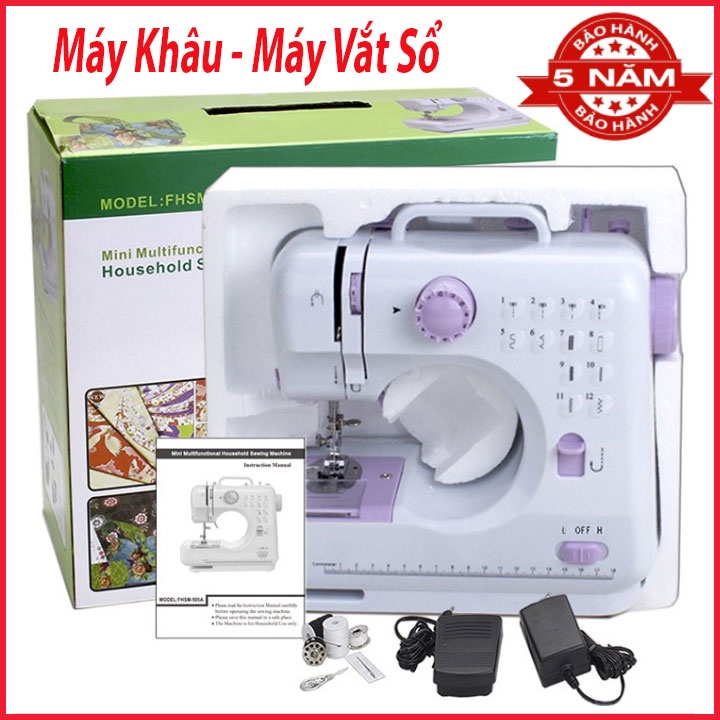 Máy May Mini Gia Đình Cao Cấp FHSM 505 - Máy Khâu 12 Đường May, Có Vắt Sổ, May Được Vải Thun Có Chân Vịt------------------------------------------------