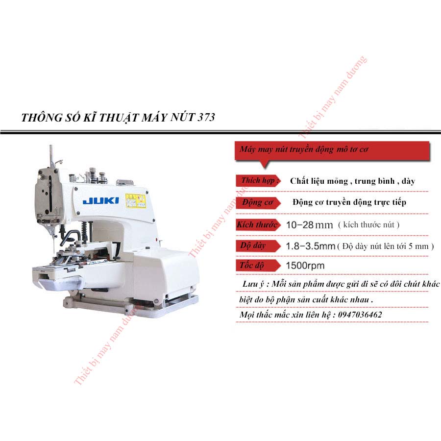 Juki MB 373ns thuộc dòng máy một kim dung để đính các loại cúc có chân, cúc bọc, cúc đồng, cúc kết hợp.