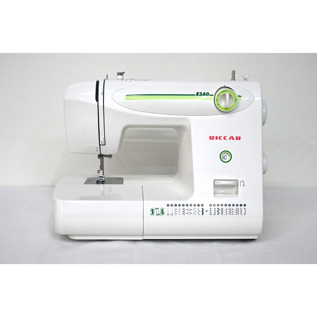 Máy may gia đình Riccar 83A0 kiểu dáng hiện đại, kích thước nhỏ gọn, có thể linh động đặt ở nhiều vị trí khác nhau.- 21 kiểu may cơ bản, may được loại chỉ thẳng đơn giản, mũi ziczac và nhiều mũi trang trí khác.