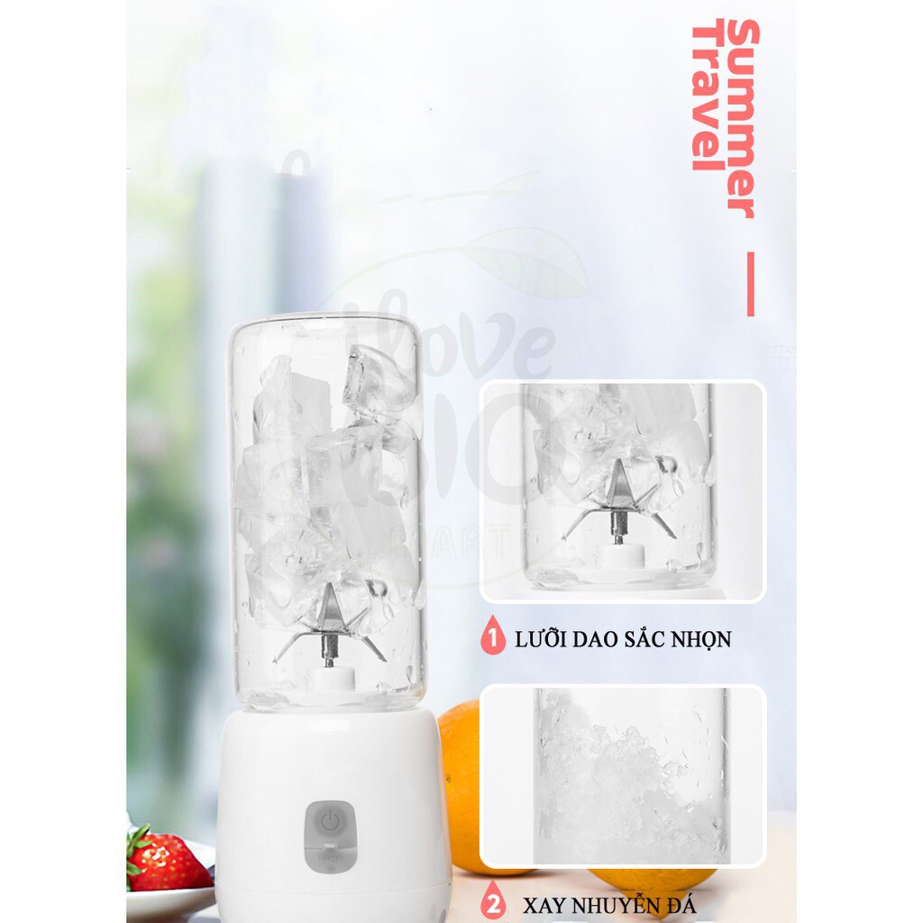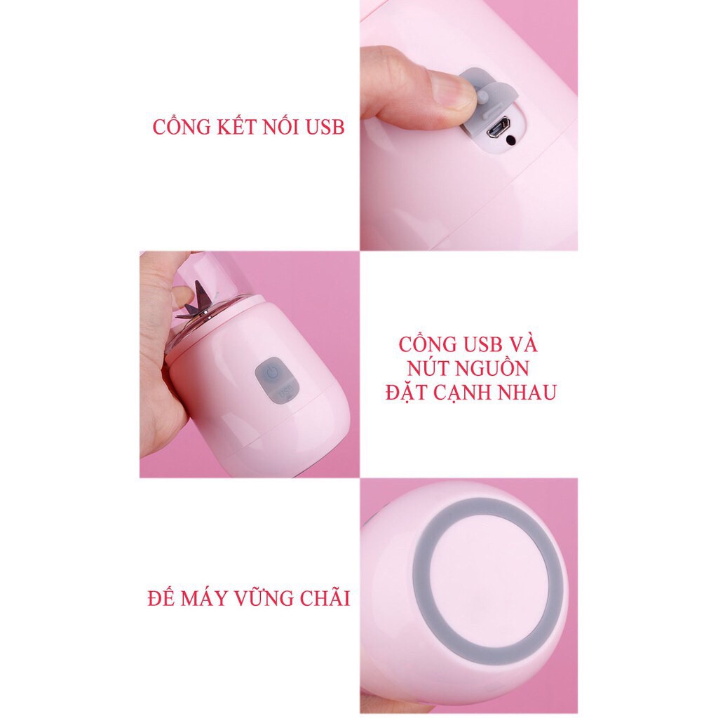 Máy Xay Sinh Tố Cầm Tay Phụ kiện: Có cổng cắm USB, dùng điện từ máy tính hoặc thiết bị tích điện, tự ngắt điện.