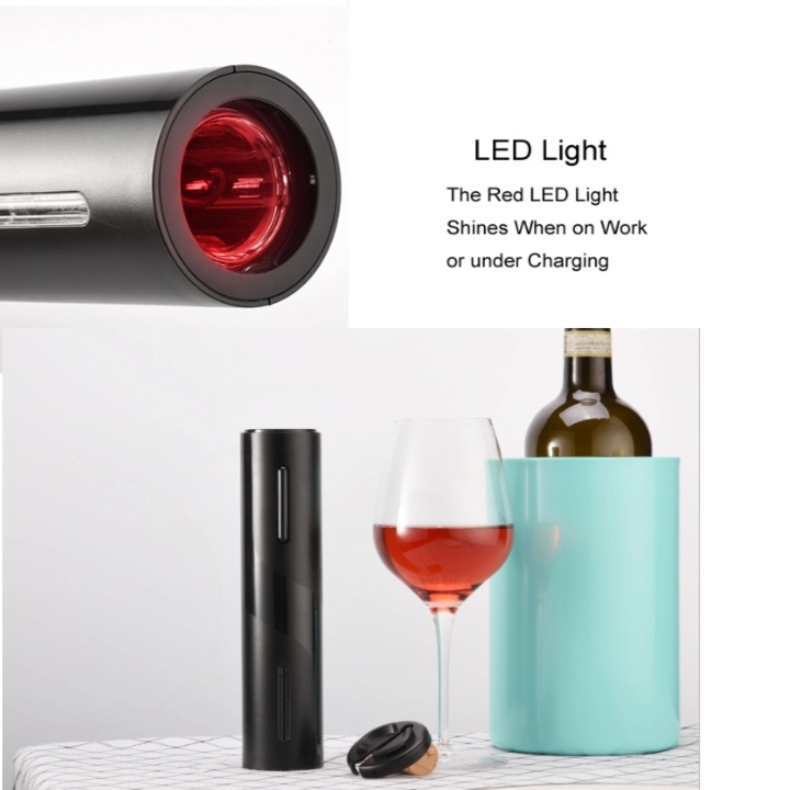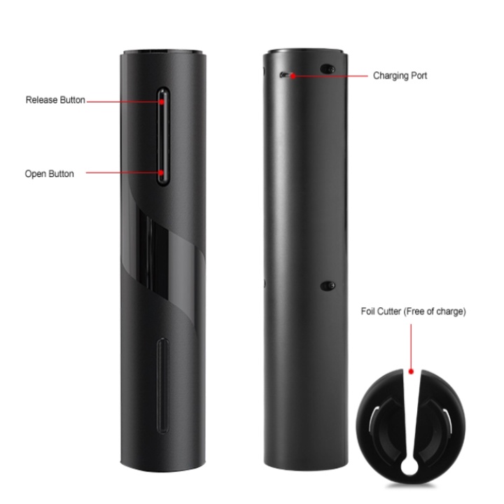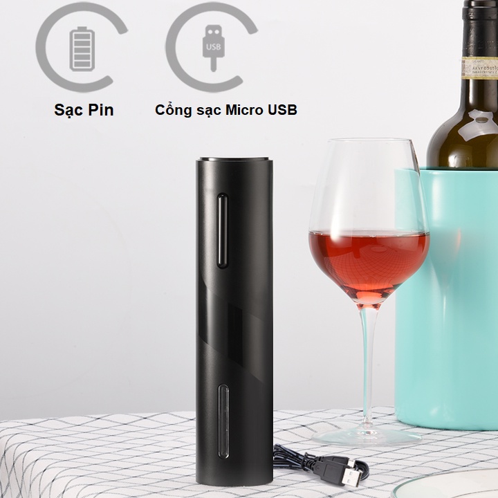 Máy mở nắp chai rượu vang tự động chạy bằng pin sạc HES-008 550mAh - Chất liệu: Hợp kim nhôm + nhựa ABS🍷Dụng cụ mở nắp chai rượu vang tự động là một phụ kiện hỗ trợ người dùng khui nắp rượu nhanh chóng mà không phải tốn quá nhiều sức lực. Với phụ kiện này, bạn sẽ không còn phải lo vật lộn với chiếc nắp chai cứng ngắc ngày nào nữa.