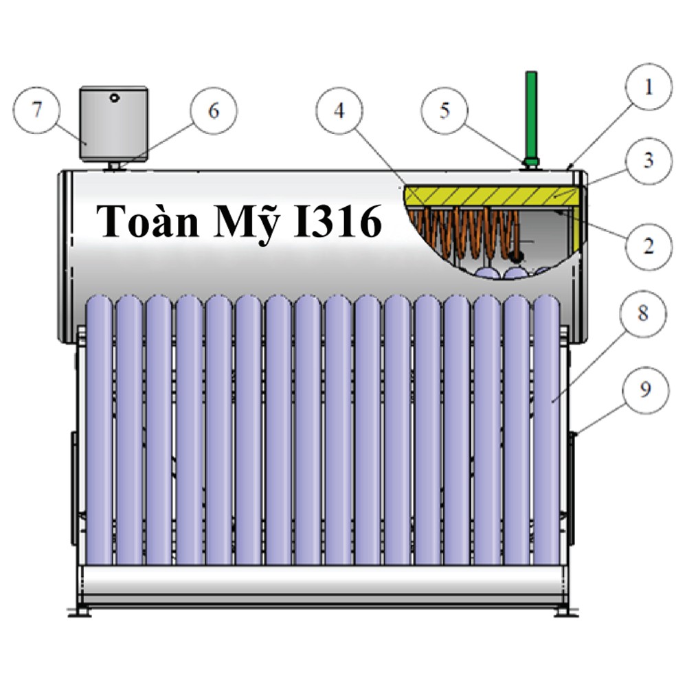 Cấu tạo của máy nước nóng năng lượng mặt trời I316 200 lít Toàn Mỹ: