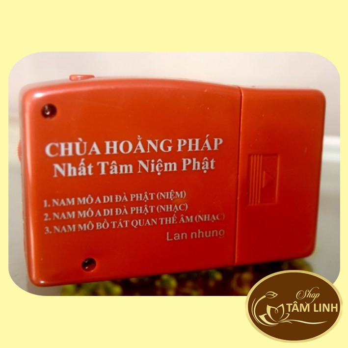 Máy niệm phật chạy pin hoặc điện 220VCó 3 giọng niệm được cài sẵn (có ảnh minh họa).