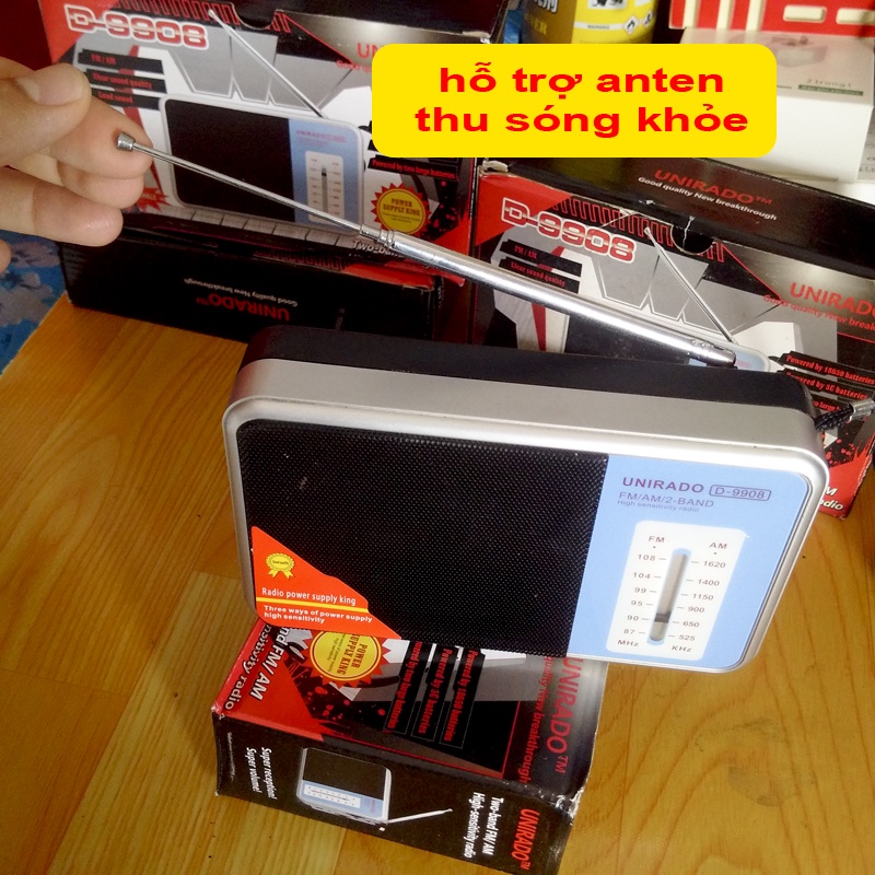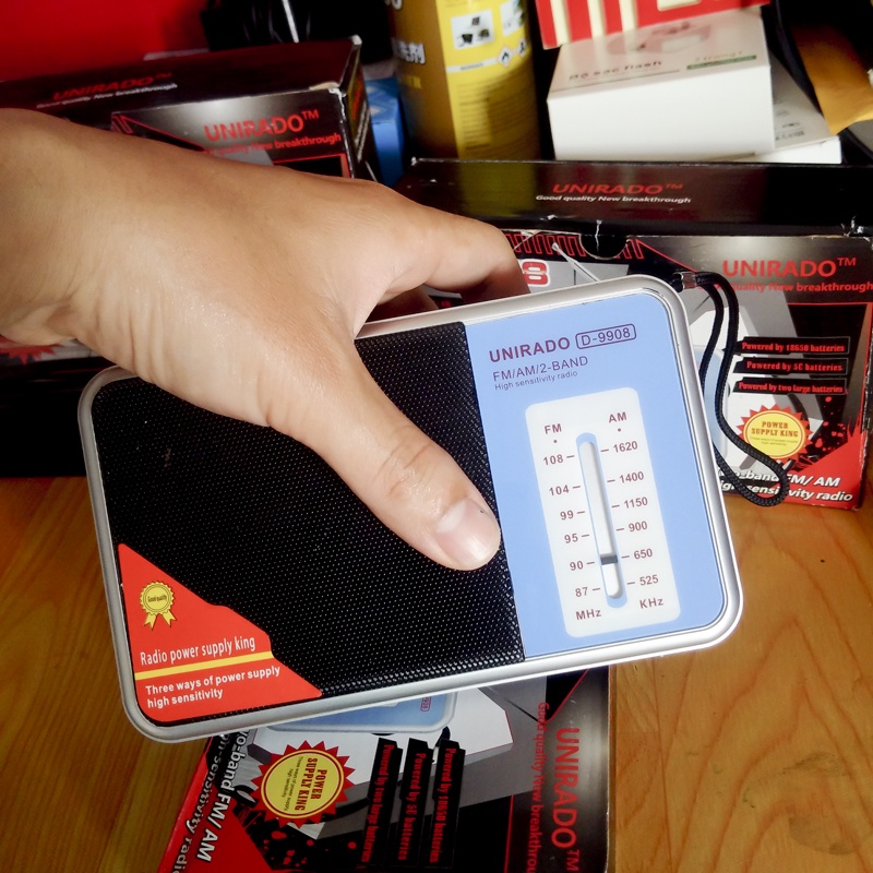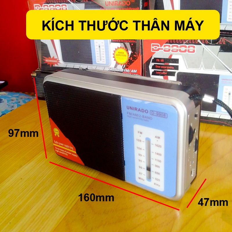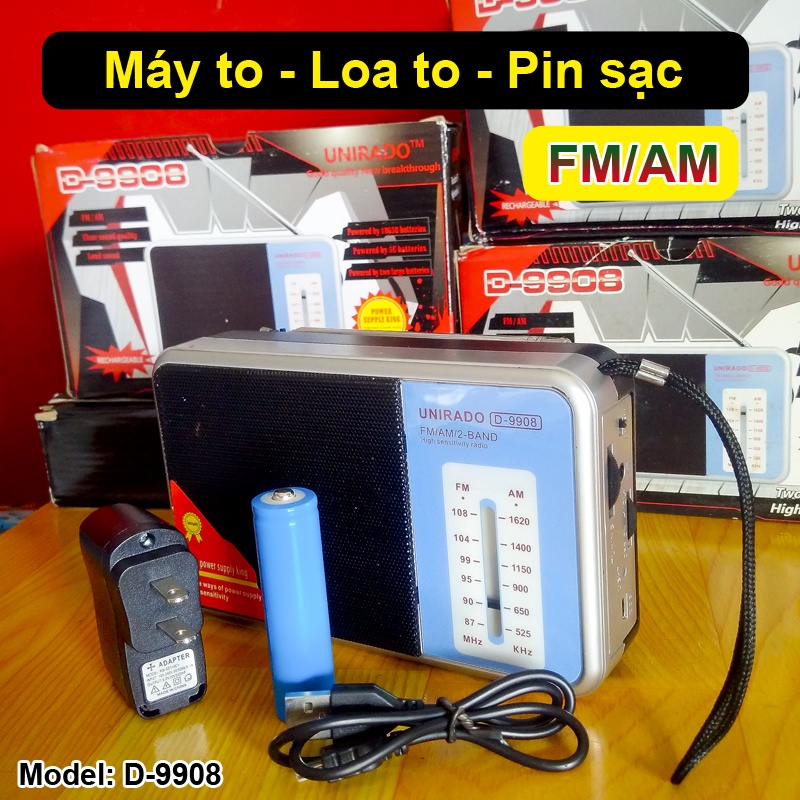 Thiết Bị Âm Thanh > Máy nghe nhạc > Radio & Cát-sét || Máy nghe đài AM / FM Loa to pin sạc D-9908Còn hàng