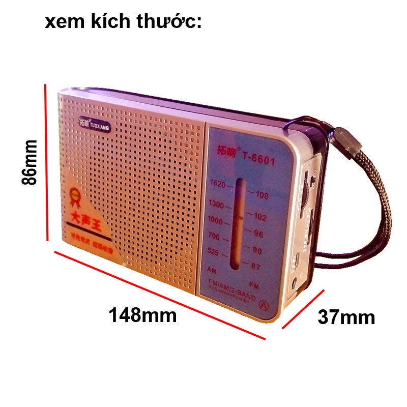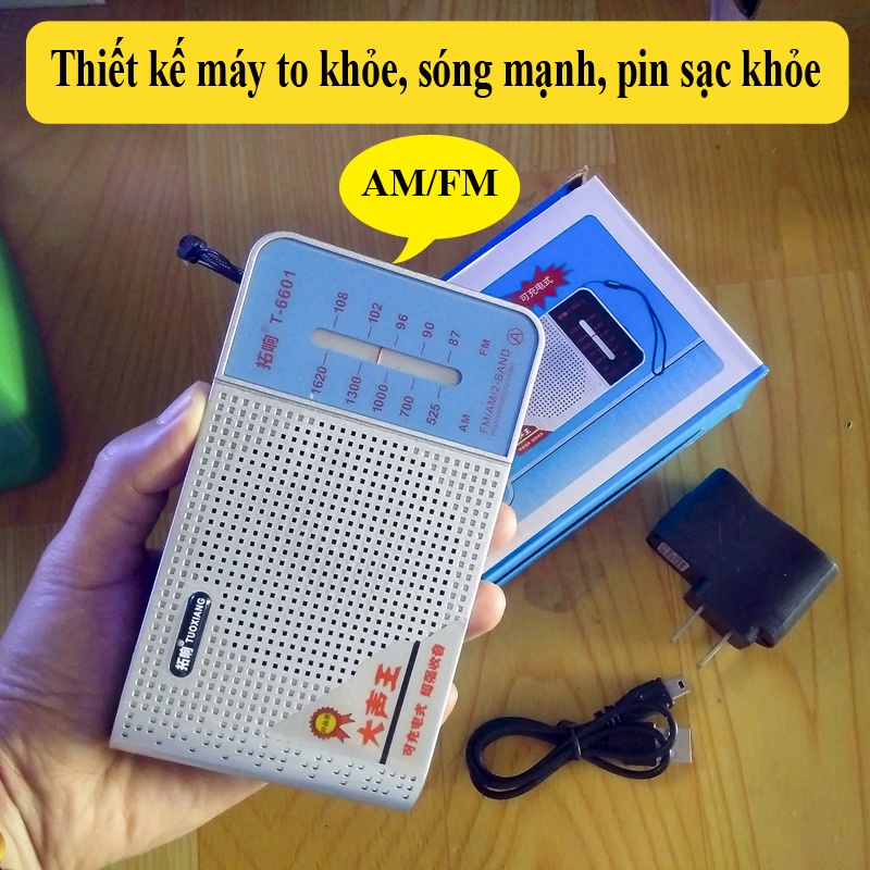 Mô tả sản phẩm Máy nghe đài AM / FM Loa to pin sạc T-6601✔️Máy nghe đài chuyên FM AM sóng khỏe