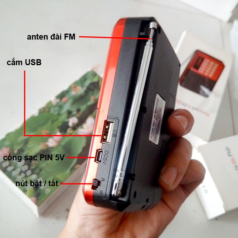 Giới thiệu Máy nghe FM, Kinh Phật, Nhạc, hỗ trợ thẻ nhớ + USB Pin sạc - model K518