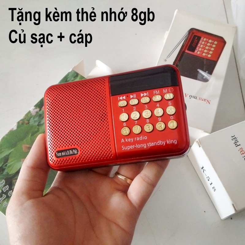 Máy nghe FM, Kinh Phật, Nhạc, hỗ trợ thẻ nhớ + USB Pin sạc - model K518