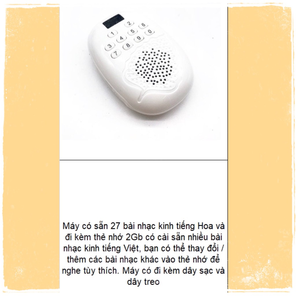 Tên sản phẩm: Máy nghe kinh màu trắng phong thủy có họa tiết hình chiếc lá, có kèm dây treo để thuận tiện đeo trên ngườiKích thước như hình ảnh