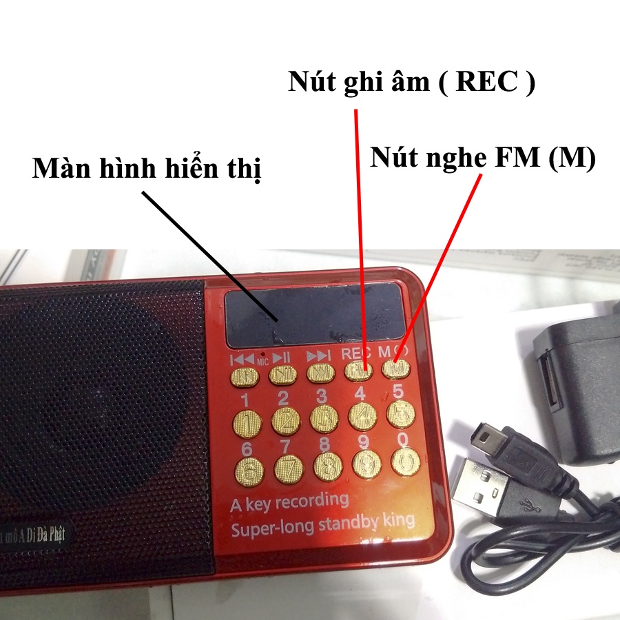 - Cổng cắm tai nghe 3.5mm - Bộ số kênh từ 0-9 số để chọn đài và nhạc