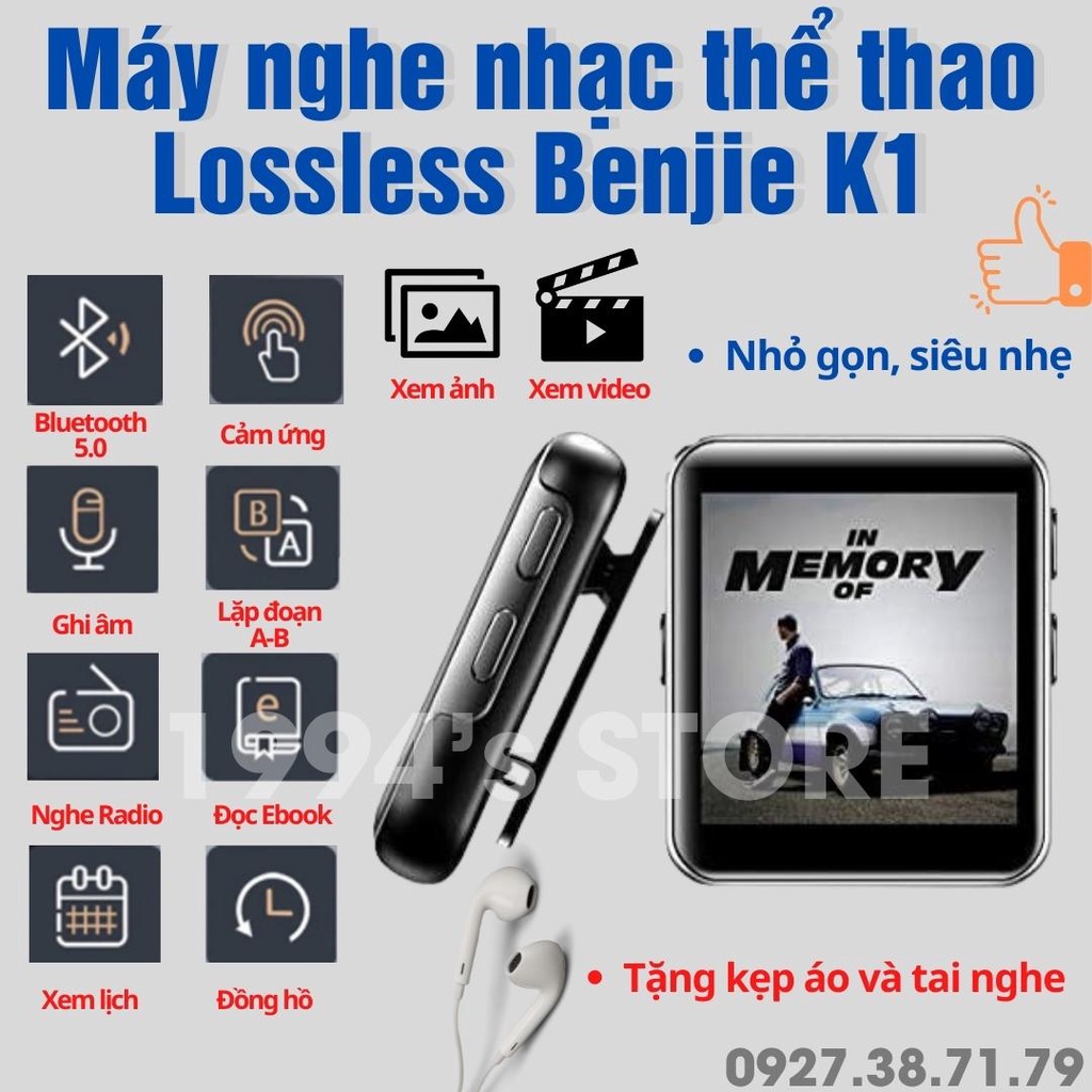 Giới thiệu Máy nghe nhạc Benjie K1 - Bộ nhớ 16Gb - Bluetooth 5.0 - Bản 2022 - Màn hình cảm ứng IPS HD - Tặng kèm kẹp áo + tai nghe