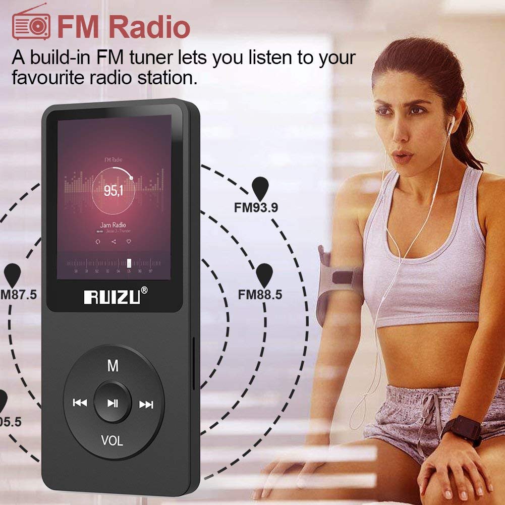 RUIZU X02 hỗ trợ nghe nhạc và FM, xem video và hình ảnh, ghi âm giọng nói, radio hay đọc sách ebook.