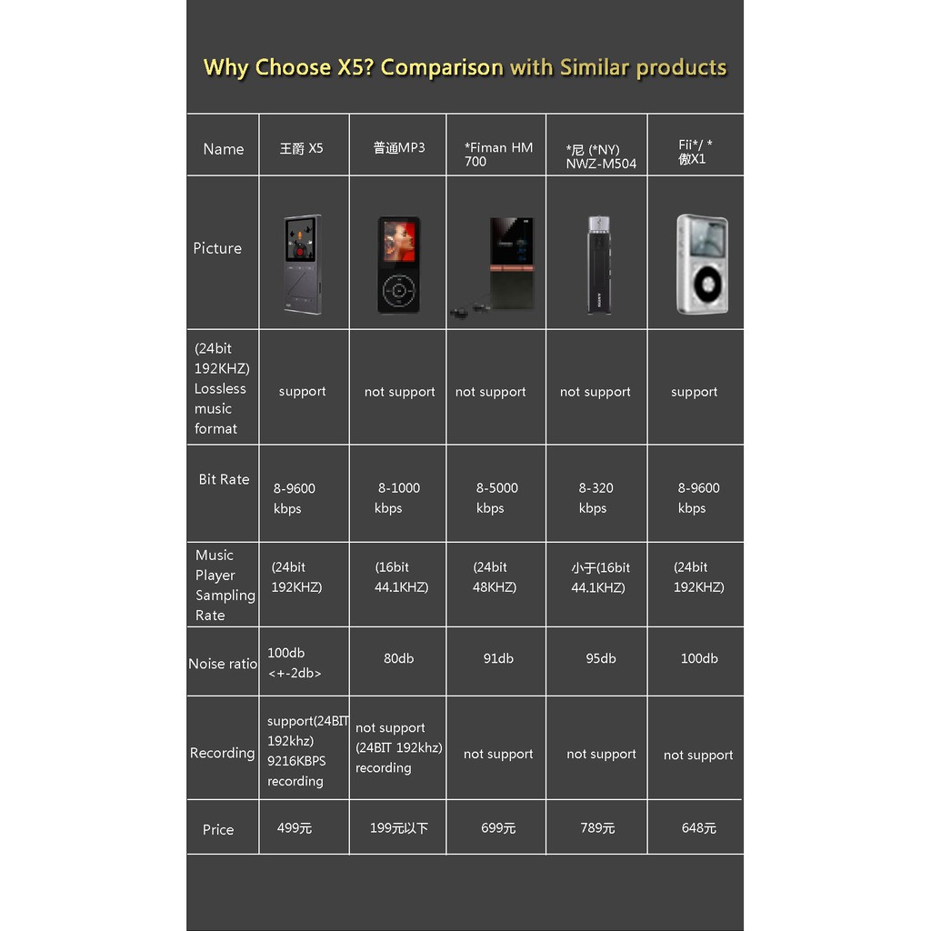 ✔ X5 tưng thích với WAV, FLAC, ALAC, APE, OGG lossless. ONN X5 cũng hỗ trợ các định dạng nhạc chất lương cao 24Bit / 192KHz
