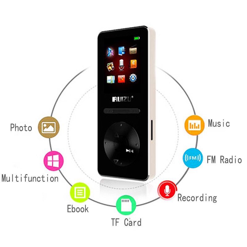 Hỗ trợ ghi âm với microphone độ nhạy cao, ngoài ra còn tích hợp: FM, E-book, Video, Lưu trữ File...