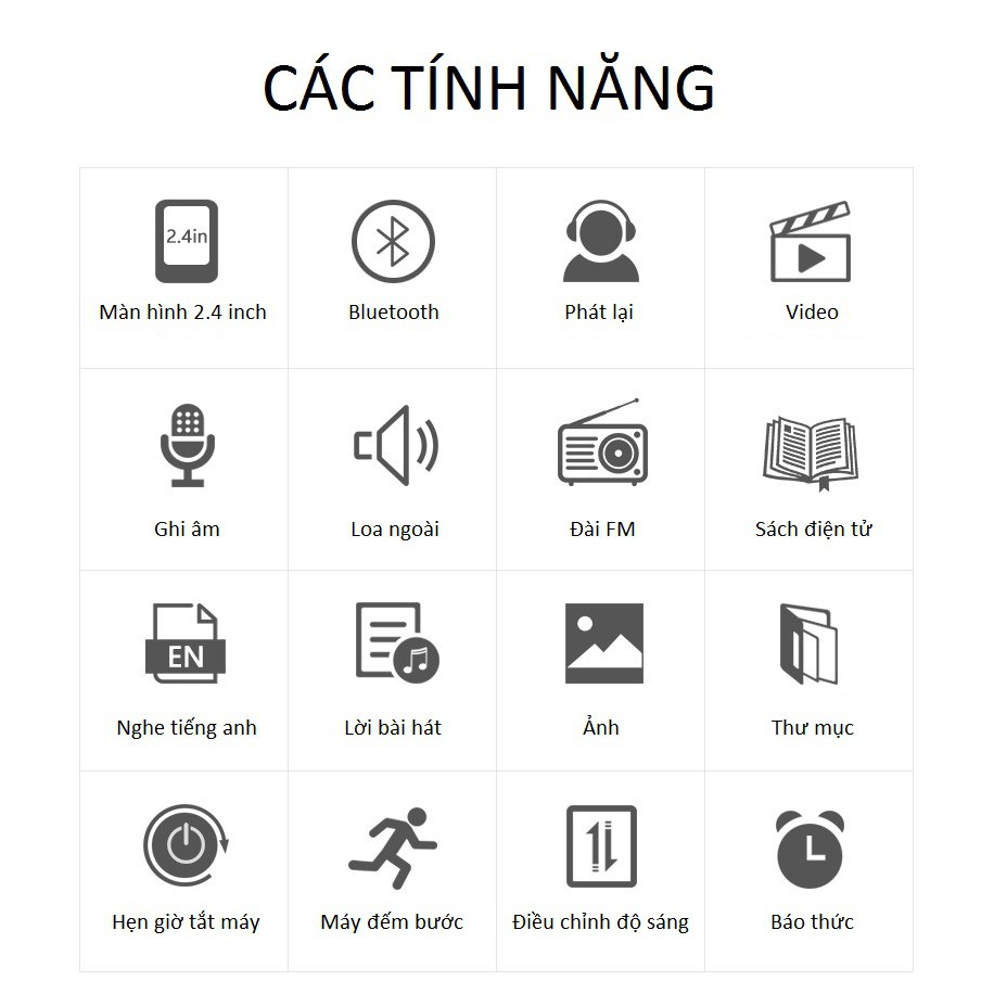 - Được trang bị một số tính năng hữu dụng khác như nghe đài FM(khi cắm tai nghe), ghi âm chất lượng cao, đọc E-Book ( chỉ hỗ trợ file .TXT không dấu)
