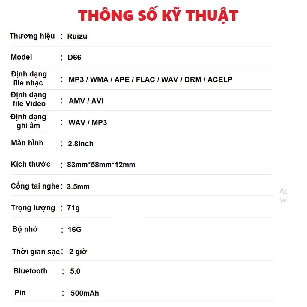 Máy MP3/MP4 Bluetooth 5.0Music Player Ruizu D66