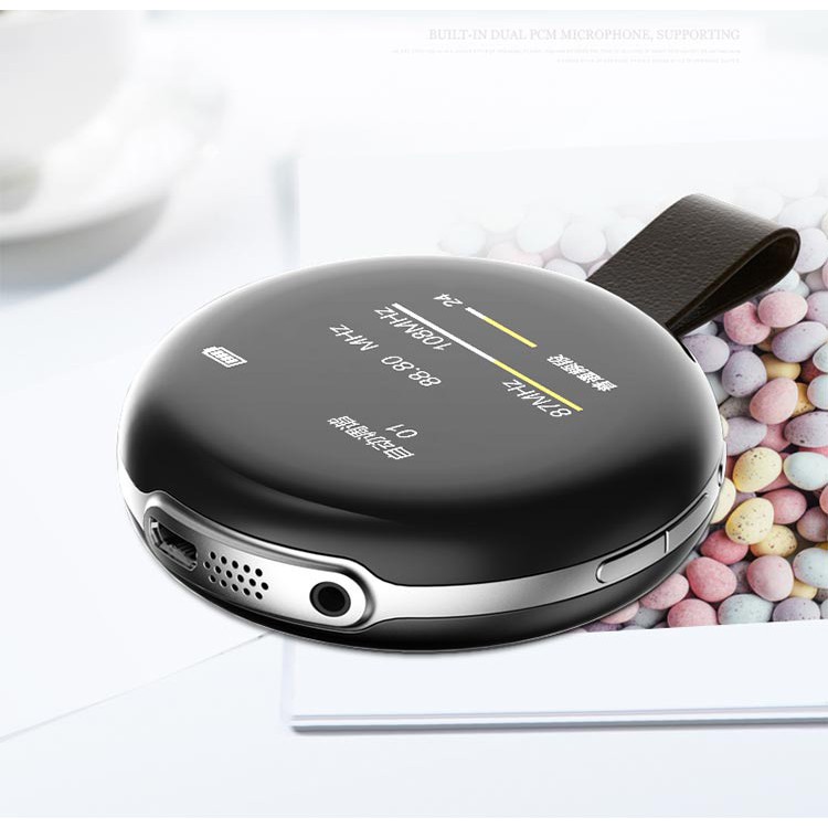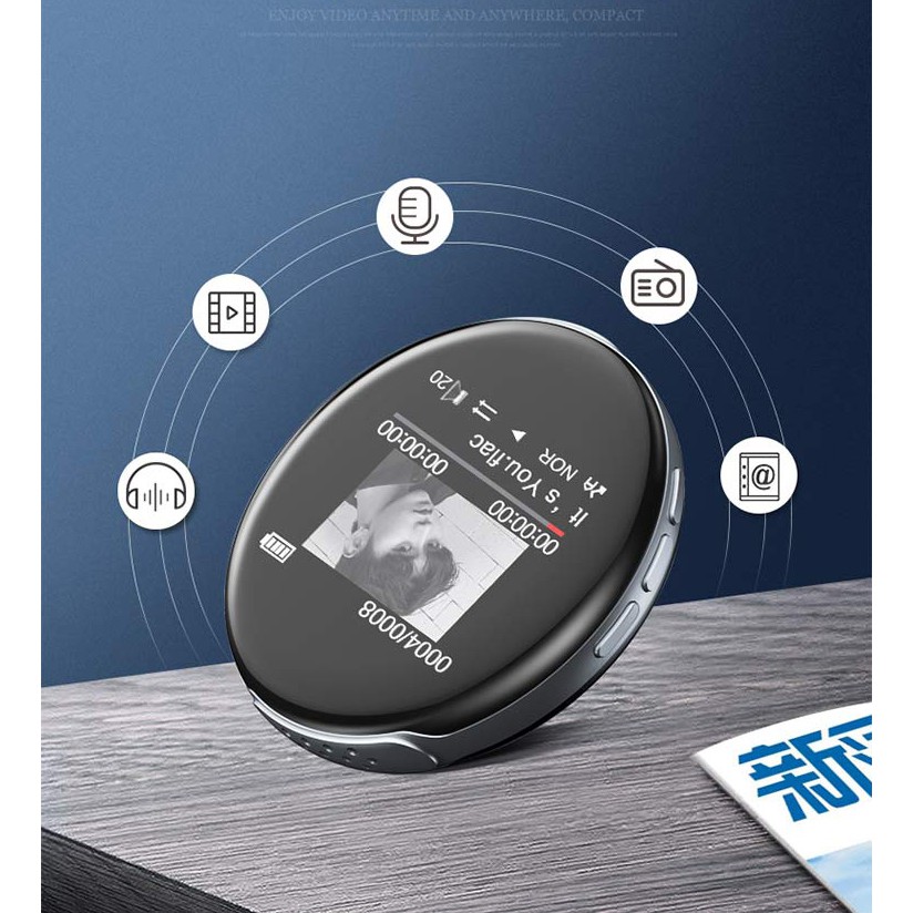 Máy nghe nhạc Ruizu M1 kết nổi Bluetooth. Máy nghe nhạc Ruizu M1 dạng tròn, kèm loa ngoài, có thể nghe nhạc, ghi âm, ebook, từ điển. Màn hình hiển thị 1.4 inches khá bé tuy nhiên vẫn đủ để người dùng sử dụng thao tác.Tính năng cơ bản của máy nghe nhạc Ruizu M1