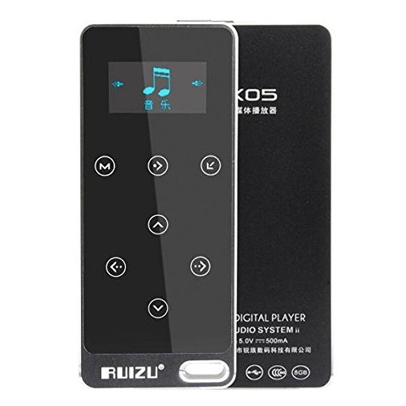Ruizu X05 thiết kế kiểu dáng nhỏ gọn nhưng đầy chắc chắn, vỏ ngoài được làm hoàn toàn bằng hợp kim nguyên khối, kích thước tương đương với thẻ ATM 87 x 38 x 7mm, trọng lượng 45g. Màn hình tương tác cảm ứng Oled kích thước màn hình 1.1 inches. Các nút điều chỉnh cảm ứng đơn giản hóa cho người dùng.Máy nghe nhạc Ruizu X05 hỗ trợ nhiều định dạng