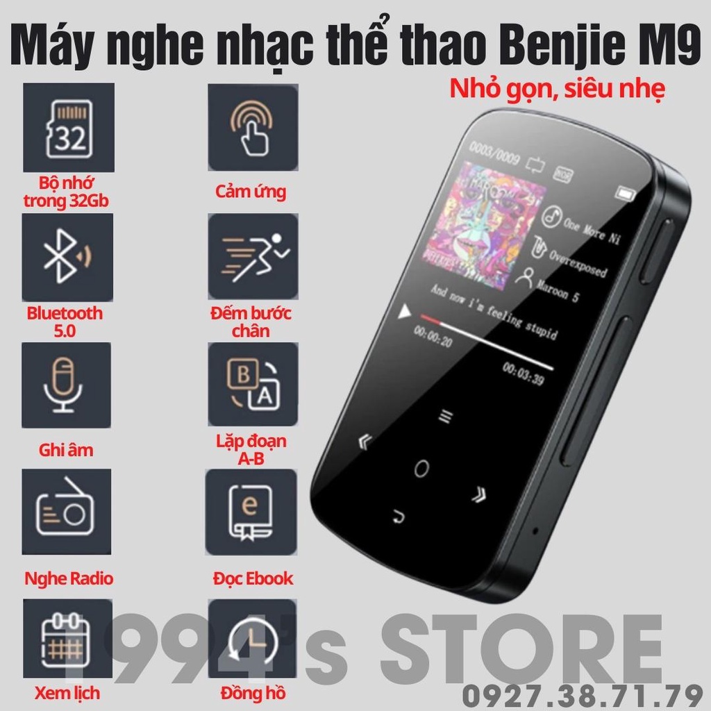 Giới thiệu Máy nghe nhạc thể thao nhỏ gọn Benjie M9 Bluetooth 5.0 Bộ nhớ 32GB Lặp đoạn A-B, Hỗ trợ tập thể dục thể thao