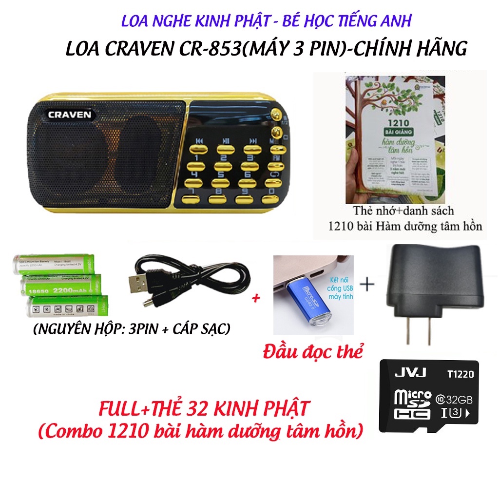 Thiết Bị Âm Thanh > Máy nghe nhạc > Radio & Cát-sét || Máy nghe pháp Craven 836s /853 FREE SHIPLoa tắm tiếng anh cho bé,Loa nghe thẻ nhớ, FM- đọc kinh phật pháp - BH 6 thángCòn hàng