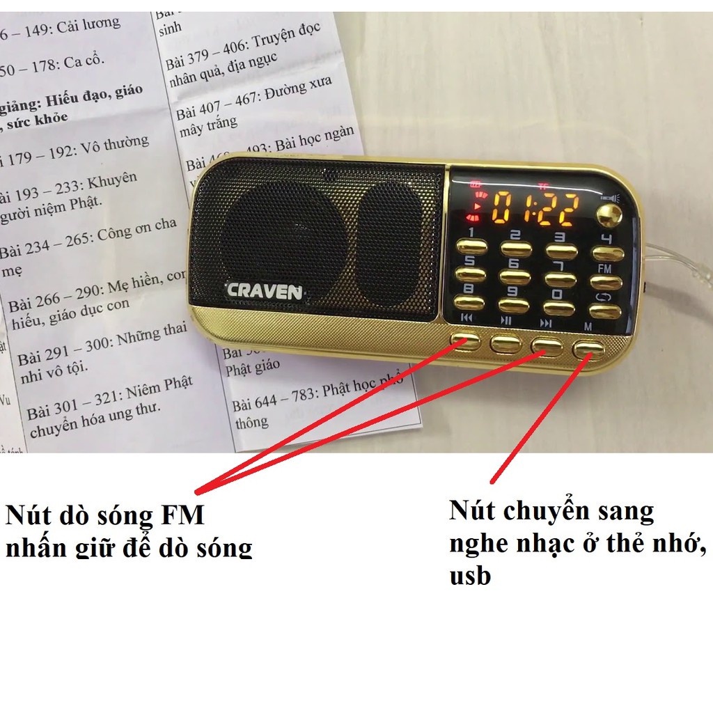 Giới thiệu Máy nghe pháp, Loa Craven CR 836/ 836S / 853 có khe cắm thẻ nhớ, USB, ĐÀI FM, kinh phật , học tiếngAnh, BH: 6 tháng