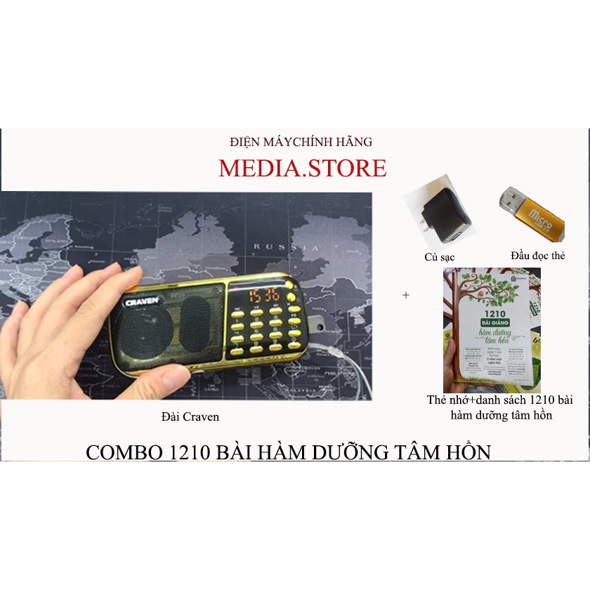 Thiết Bị Âm Thanh > Máy nghe nhạc > Radio & Cát-sét || Máy nghe pháp, loa tắm ngôn ngữ, nghe kinh phật Craven 836s( 2 pin), craven 853(3pin), đài Fm, có khe cắm thẻ nhớ, USBCòn hàng