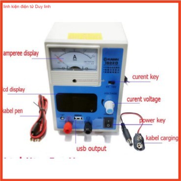 Máy nguồn đa năng KAWH 1502DMáy nguồn đa năng KAWH 1502D là máy nguồn được sử dụng làm máy kích nguồn, nguồn test với dải điện áp từ 0-15V phù hợp với công việc sửa chữa các thiết bị điện áp nằm trong dải cho phép, là đồ dùng cần thiết với các thợ sửa chữa điện tử.