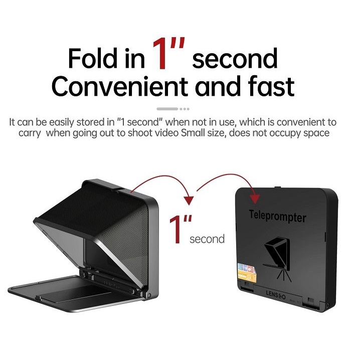 Khả năng tương thích rộng, teleprompter có thể phù hợp với tất cả các dòng điện thoại thông minh hoặc máy tính bảng và Máy Ảnh.
