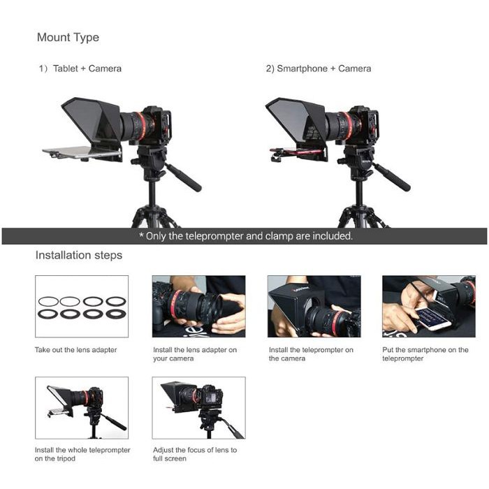 Máy nhắc chữ Telepromter Bestview T2 để người nói có thể nhìn thẳng vào ống kính máy quay / ống kính smartphone và nói một cách tự nhiên nhất, trong khi MC không phải phân tâm về nội dung nói chuyện, không phải học thuộc nội dung, rất tự tin khi nói nhờ đó việc quay hình rất tự nhiên. Bestview T2 cài đặt đơn giản, chỉ cần vài thao tác, máy ảnh tele sẽ sẵn sàng hoạt động. Hỗ trợ ống kính góc rộng và đi kèm với bộ điều hợp ống kính 8 chiếc (49mm / 52mm / 55mm / 58mm / 62mm / 67mm / 72mm / 77mm). Bestview T2 phù hợp cho bài phát biểu, phỏng vấn trực tiếp, phát trực tiếp, vlog…THÔNG SỐ KỸ THUẬT: