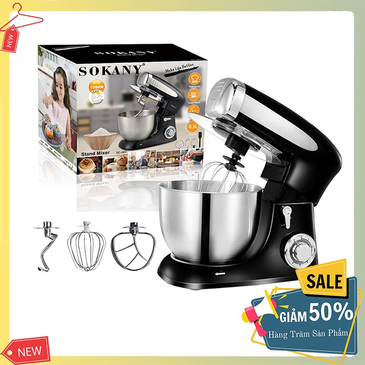Thiết Bị Điện Gia Dụng > Đồ gia dụng nhà bếp > Máy trộn thực phẩm || Máy nhào bột 6.5L SOKANY SC-267 - máy trộn bột, đánh trứng, trộn salad- thố inox 100%Còn hàng