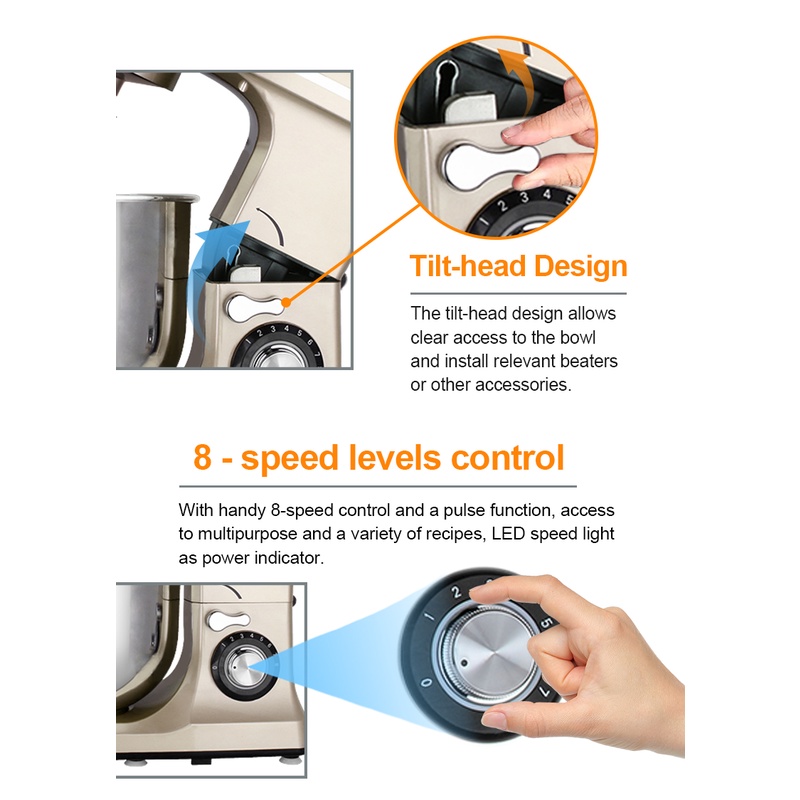 Thiết Bị Điện Gia Dụng > Đồ gia dụng nhà bếp > Máy trộn thực phẩm || Máy nhào bột công nghiệp 8L 1600W GALAXY NATUREL-công nghệ 2 càng đánh của Mỹ -Nhào tối đa 2 kg bột khôCòn hàng
