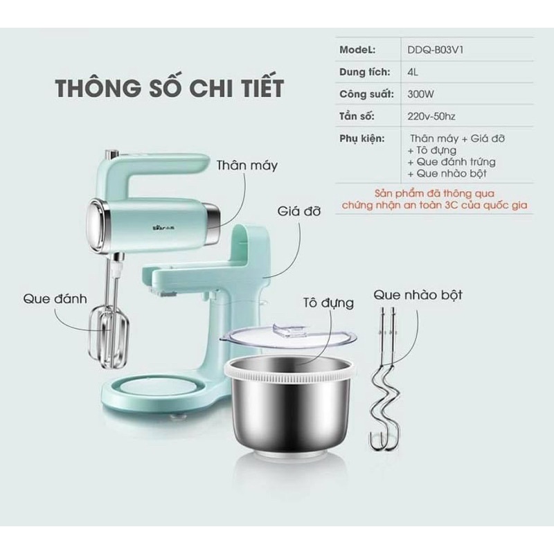 Giới thiệu Máy nhào bột, đánh trứng Bear 4L, Bảo hành 18 tháng chính hãng - B03V1