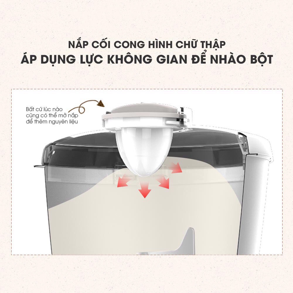 ✔ Dung tích âu: 5L, có thể nhào 0,5-2,5kg bột