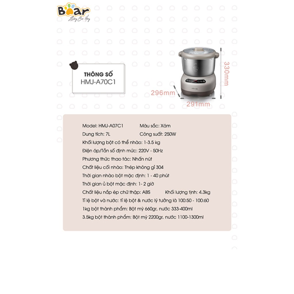 Máy Trộn Bột 7L Bear HMJ-A70C1 - máy nhào bột Bear chính hãng, động cơ mạnh mẽ hơn, nhào bột nhanh hơn, làm bánh siêu ổn