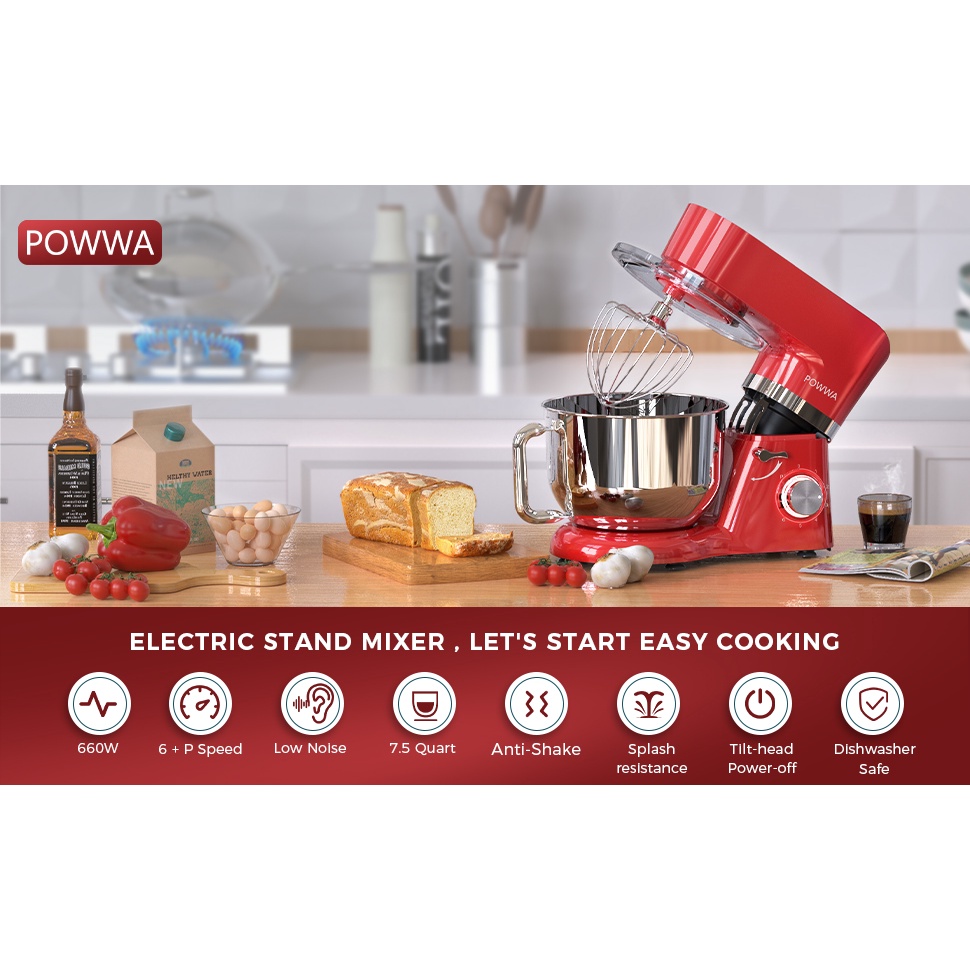 Máy nhào bột POWWA 6.5L 1500W - trộn 1.2 kg bột khô - Đánh kem, đánh trứng, trà bông - Hàng chính hãng ANH QUỐC