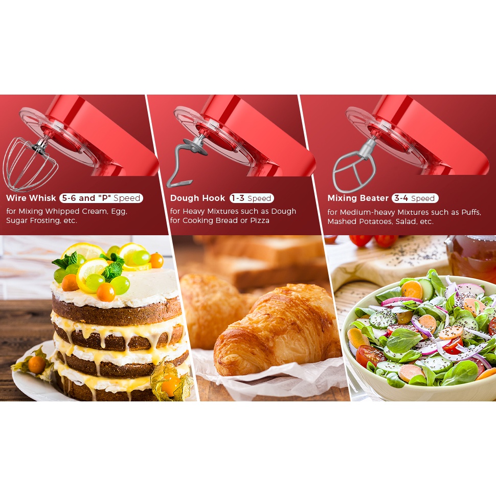 ✔️Trộn bột tốc độ 1, 2, 3; Đánh kem tốc độ 5, 6; Làm chả giò, trà bông, trộn salad tốc độ 3,4. Chúng ta nên sử dụng đúng để máy bền và không bị rung lắc nhé.