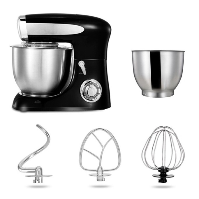 + Phụ kiện đi kèm: Phới lồng, móc nhào, que phẳng, bát trộn, tấm chắn, thìa vét nguyên liệu.
