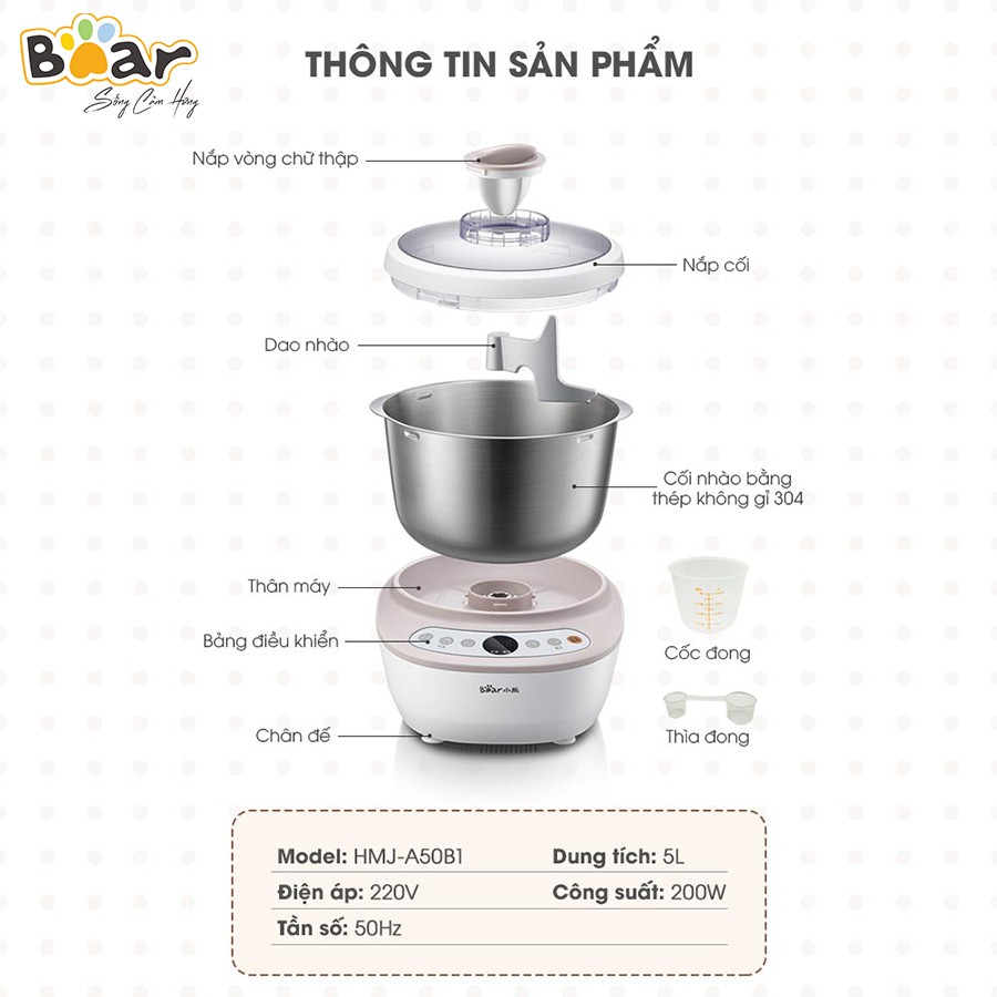 Giới thiệu Máy nhào bột tự động - 5L - HMJ-A50B1 - Bản Tiếng Trung - Hàng chính hãng, Bảo hành 12 tháng