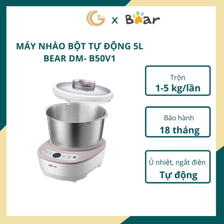 Giới thiệu [Mã ELHAMS5 giảm 6% đơn 300K] Máy nhào bột tự động màu bạc 5L Bear DM- B50V1 chính hãng