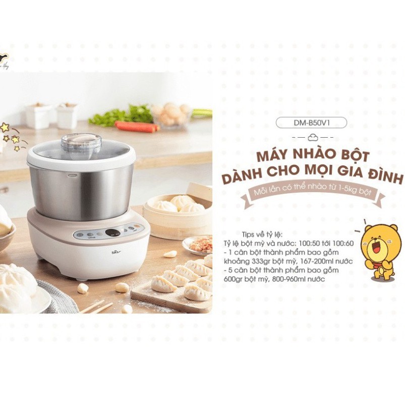 Thiết Bị Điện Gia Dụng > Đồ gia dụng nhà bếp > Máy trộn thực phẩm || [Mã 44ELSALE2 giảm 7% đơn 300K] Máy nhào bột tự động màu bạc 5L Bear DM- B50V1 chính hãngCòn hàng