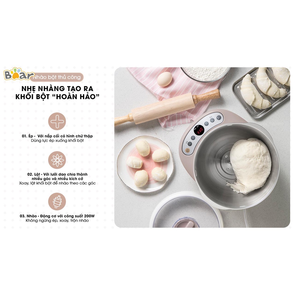 Máy Nhào, Nhồi, Trộn Bột Bear Đa Năng_ Gồm 3 kích cỡ 3L,5L, 7L, tự động ủ bột, màn hình hienr thị điện tử, BH 18 tháng