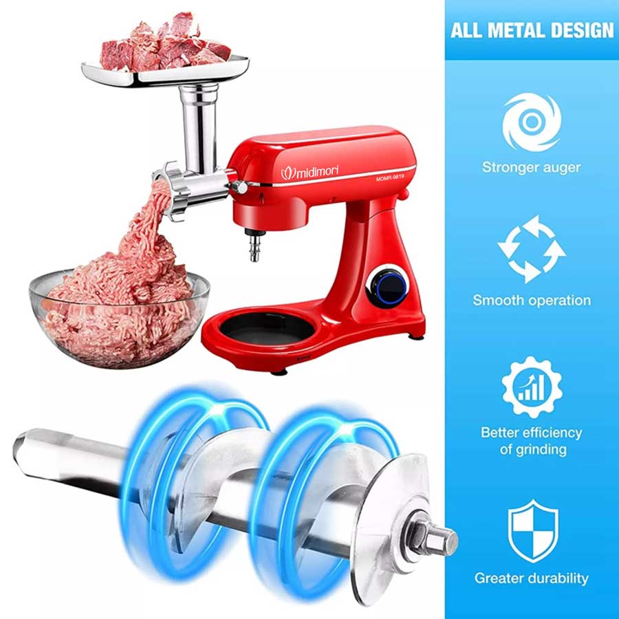 Máy nhào trộn bột, xay thịt đùn xúc xích Midimori 1800W, thân khung thép, cối inox 6 lít có dung tích lớn nhưng được thiết kế thông minh và nhỏ gọn, đem lại giải pháp tiết kiệm không gian cho căn bếp gia đình bạn.