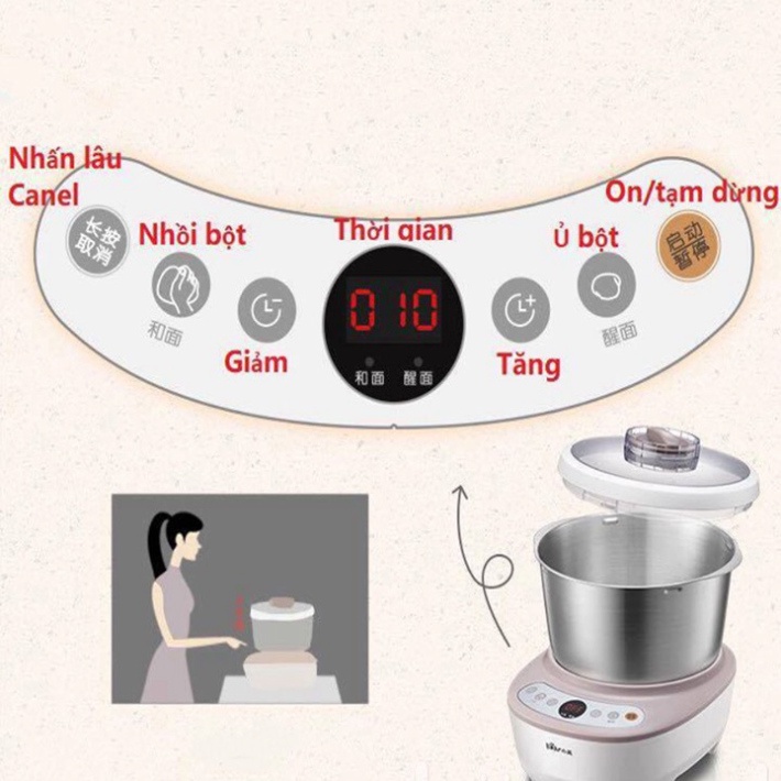 - Chức năng hẹn giờ với các nấc thời gian ủ và nhào bột thuận tiện. Người dùng có thể tự do chọn lựa chế độ và thời gian theo yêu của mỗi loại bánh.