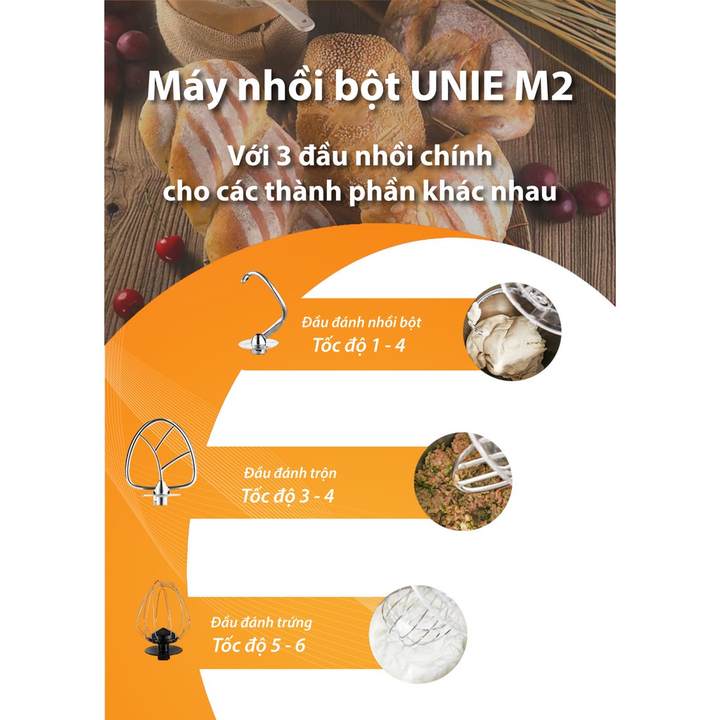 Thiết Bị Điện Gia Dụng > Đồ gia dụng nhà bếp > Máy trộn thực phẩm || [Mã ELMALL10 giảm 10% đơn 500K] Máy nhồi bột đa năng, đánh trứng chuyên dụng UNIE EM2 1000W, thố trộn 5LCòn hàng