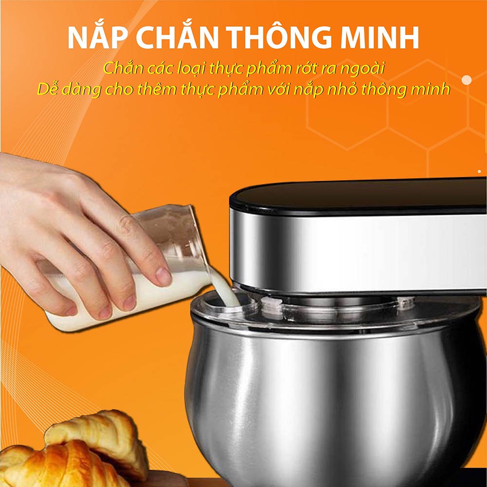 Máy có nắp thố kèm theo, đảm bảo nguyên liệu không bị văng ra ngoài khi máy đang trộn.
