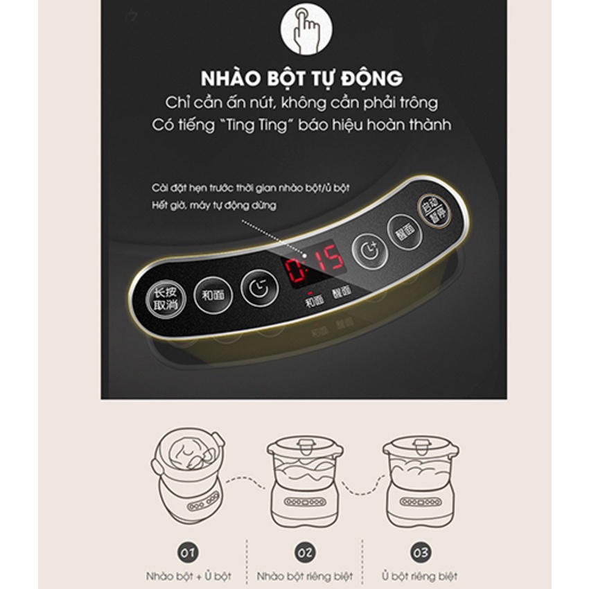 Chức năng tạo nhiệt độ ủ bột: 35-40°C.
