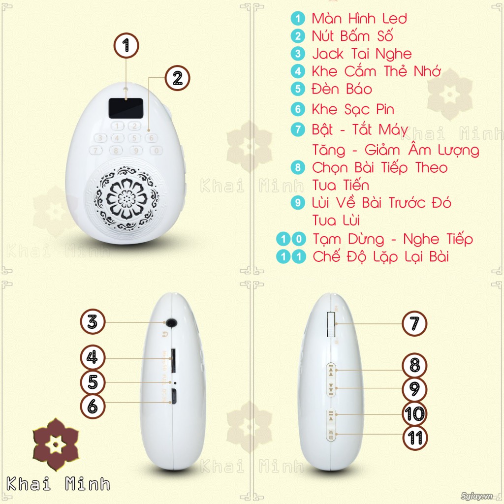 - Có phím chức năng chuyển đổi từ chế độ nghe bài niệm cài sãn trong máy hoặc nghe bài giảng theo thẻ nhớ.