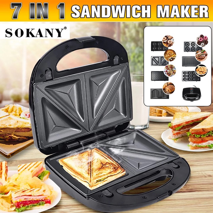 Máy Làm Bánh Đa Năng 7 Khuôn Waffle, Sandwich, Donut, Kẹp Bánh Mì Chính hãng SOKANY